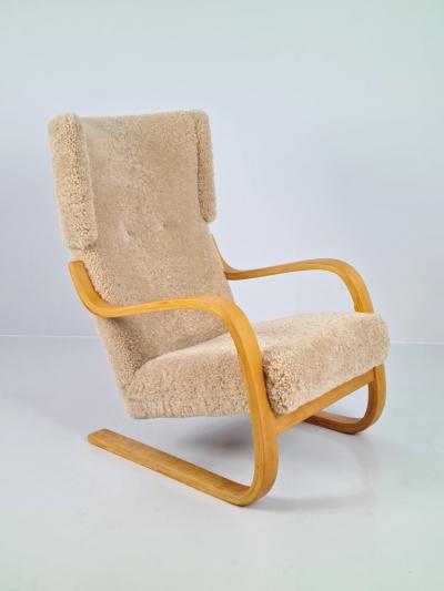 Alvar Aalto Armchair Model 401 in Birch and Honey Sheepskin, Artek 1950s