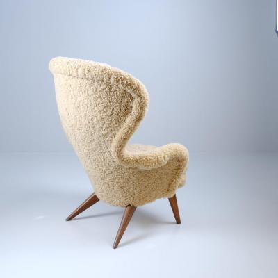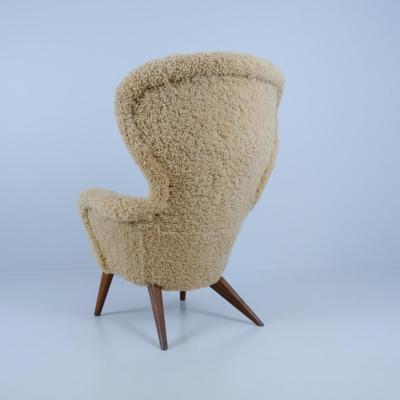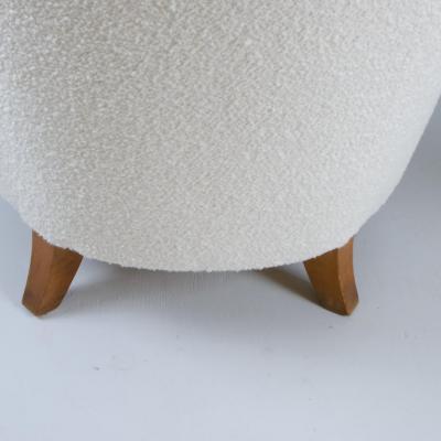 Paul Boman Wingback Chair in Pearl Bouclé Fabric and Beech, Finland, 1940s