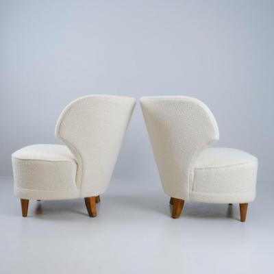 Pair Of Carl-Johan Boman Armchairs Upholstered in White Fabric, Boman Oy 1950s