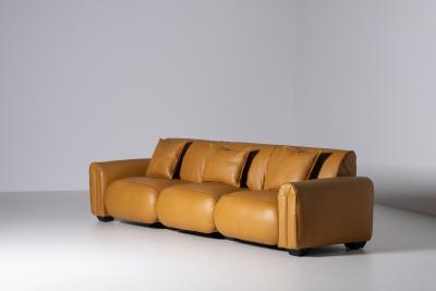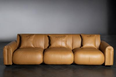 Mid-Century Modern Beijinho Sofa, Camel Italian Leather, Handmade by Greenapple