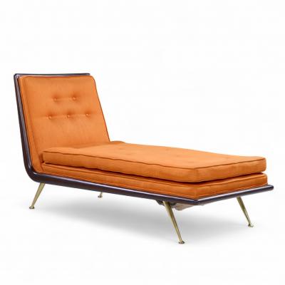 Robsjohn Gibbings for Widdicomb Mid Century Brass, Mahogany Chaise Lounge Chair