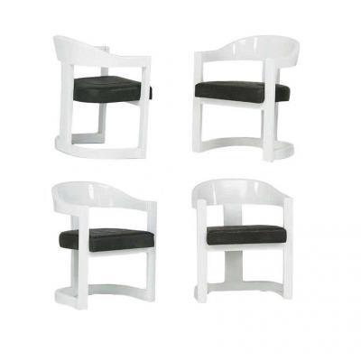 Rare pair of black lacquer chairs J.C. Mahey 1970s