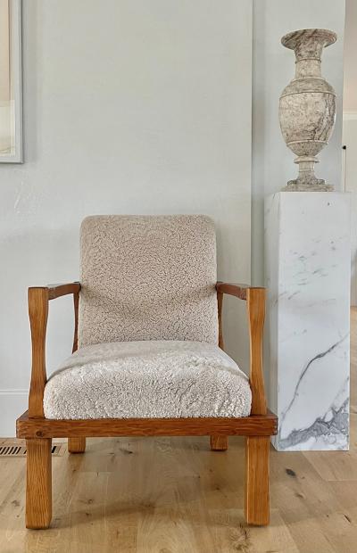 Guillerme et Chambron Pair French Oak Petite Repos Lounge Chairs Votre Maison