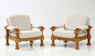 Danish Modern, Fabric, Wood, His and Hers Lounge Chairs, Denmark, 1960s