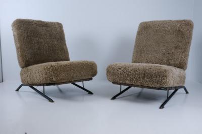 Pair of Commissioned Ilmari Tapiovaara Lounge Chairs, Sheepskin, Merivaara 1950s