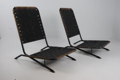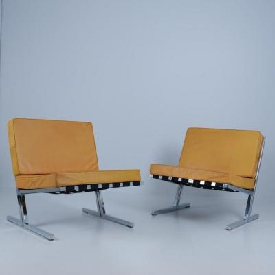 Esko Pajamies & Toivo Korhonen, Pair of Lounge Chairs in Leather & Steel 1960s