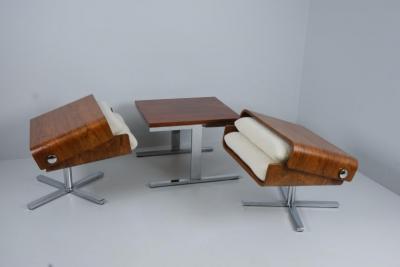 Esko Pajamies, Pair of Lounge Chairs & Coffee Table, Rosewood and Chrome 1960s