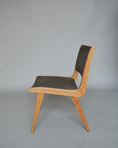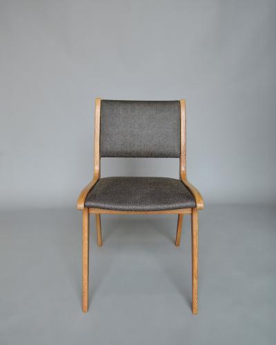 Set of Six French Midcentury Oak Dining Chairs by Roset