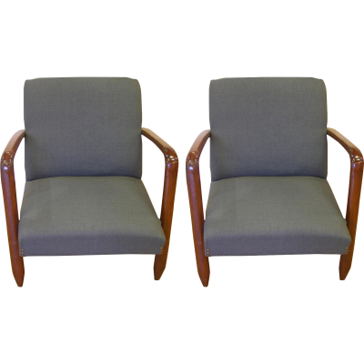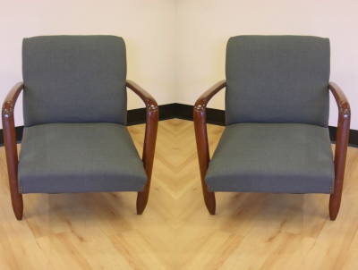 Jacques Adnet pair of chicest black hand stitched leather pair of chairs