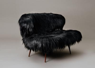Sexy 1970s Lucite & Brass Set of Chairs in Ivory White Bouclé on Casters c. 1970