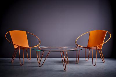 Set of Two Gary Snyder Lounge Chairs and Coffee Table in Burnt Orange, US, 2020