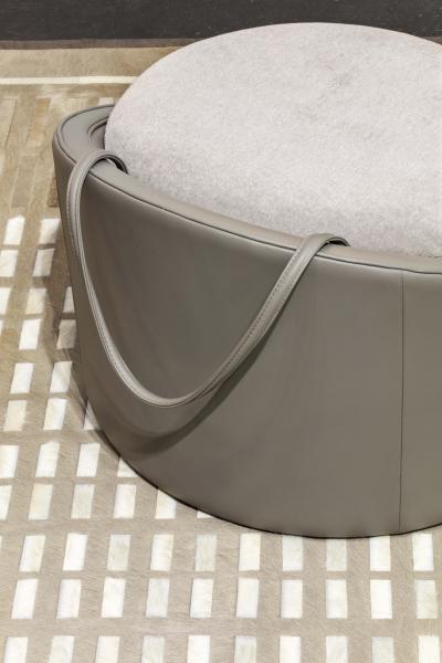 White and Beige Hide 'Tambour' Ottoman or Coffee Table by Design Frères