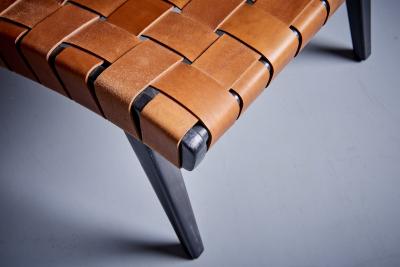 Jens Risom for Vostra Pair of Leather Webbed Lounge Chair with Ottoman