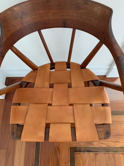 Pair of T.H. Robsjohn-Gibbings for Widdicomb Striped Walnut Dining Armchairs