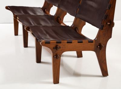 Three-seat fruitwood and leather settee attributed to Angel Pazmino