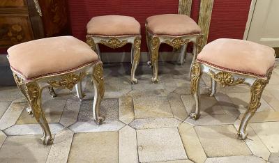A Set of Four Carved Wood Tabourets with Original Paint and Gilding