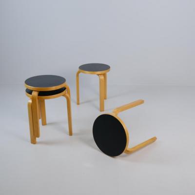 Set of 4 Alvar Aalto Stools Model no 60, Black Laminate, Artek 1930s