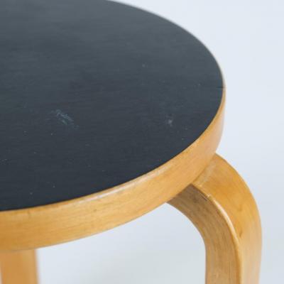 Alvar Aalto 3-Legged Stool Model 60 In Birch and Black Linoleum, Artek 1950s