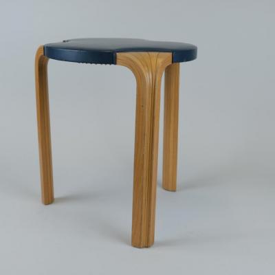 Rare Alvar Aalto Stool X600 for Artek in Original Blue Leather and Birch, 1950s