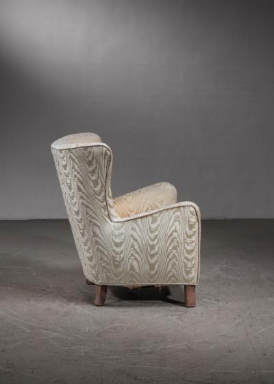 Danish Cabinetmaker Wing-Back Chair with Stained Beech Legs, Denmark 1940s
