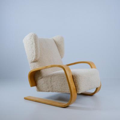 Alvar Aalto Highback "Tank" Arm Chair in Sheepskin A 38, Artek 1940s