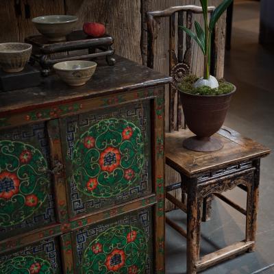 Asian 4 Drawer Chest of Drawers Night Stands, Nickel Plated Hardware, Pair