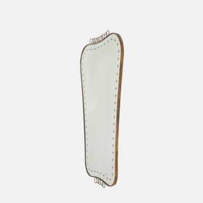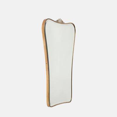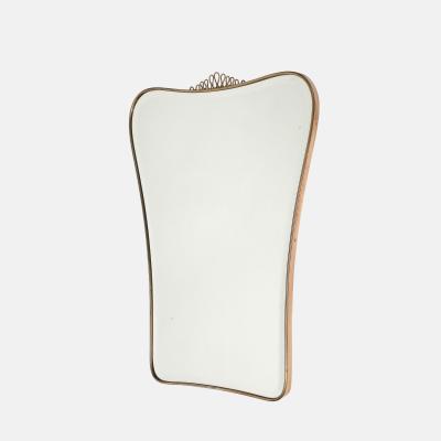 Midcentury Italian Brass Beveled Mirror with Scroll Top in Style of Gio Ponti