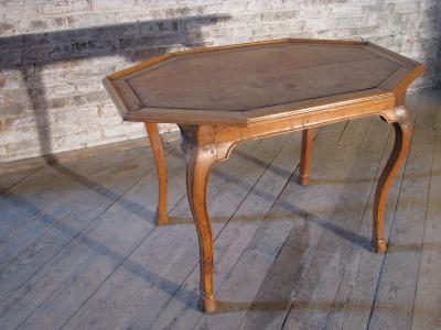 Italian Baroque 18th Century Octagonal Fruit Wood and Leather inset Center Table
