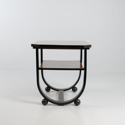 Chic 'Équilibre' Blackened Steel & Glass Side Table on Casters by Design Frères