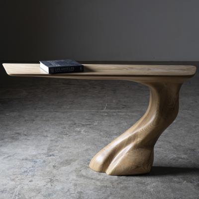 Sculptural Console ‘Linea No.1’ – Bronze Plaster Finish and Travertine Stone