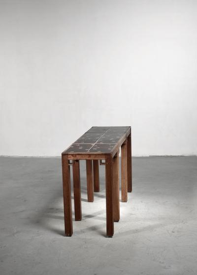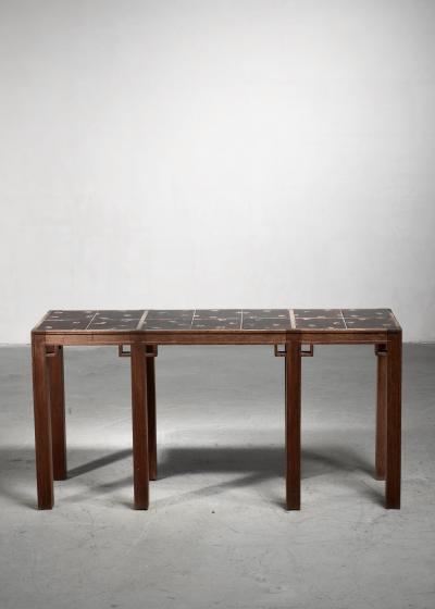 Mid Century Danish Teak Tambour Door Foyer Entry Console Phone Table