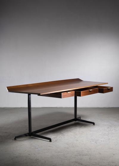 Desk table Patrice Maffei for Kappa brushed steel smoked glass 1970