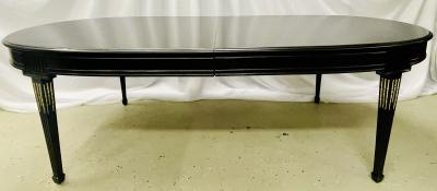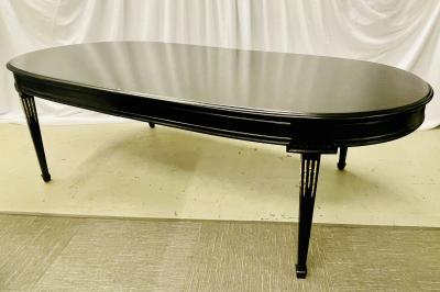 Dining Table, Louis XVI Maison Jansen Style, Black Lacquer, 15 Feet, Refinished