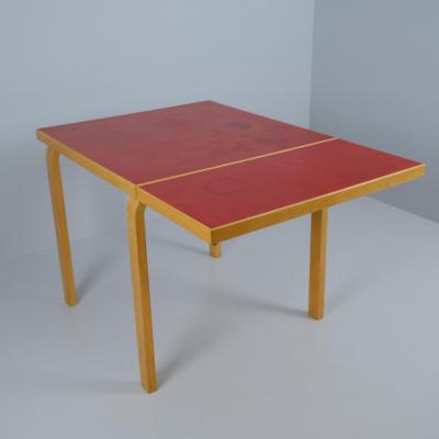 Aino & Alvar Aalto Foldable Dining Kitchen Table In Red Linoleum, Artek 1950s