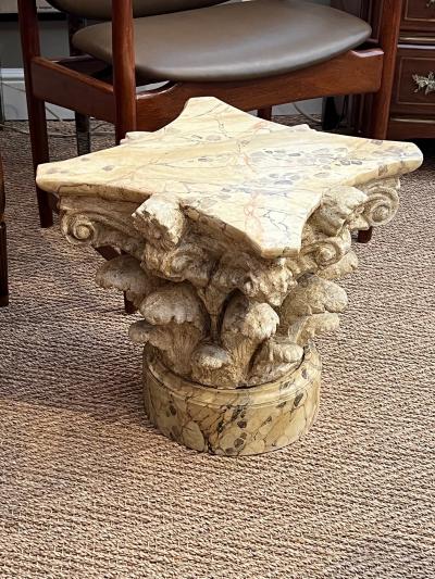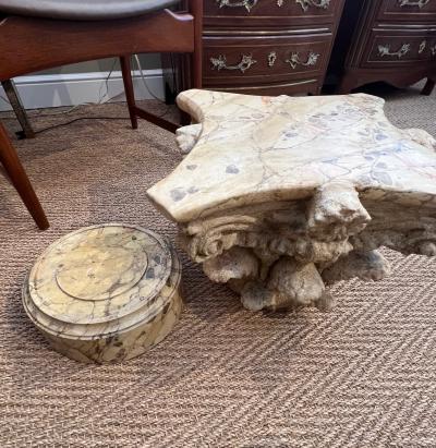 An American Painted Plaster Corinthian Capital with Faux Marble Base and Top