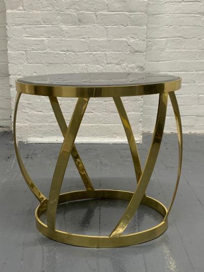 Round Martini Drinks Side Table in Brass with Soft Green Optical Glass, Italy
