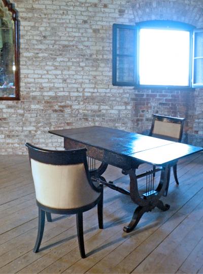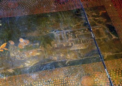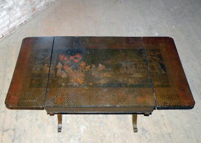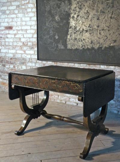 English 19th Century late Regency Sofa Table with Black Chinoiserie Decoration