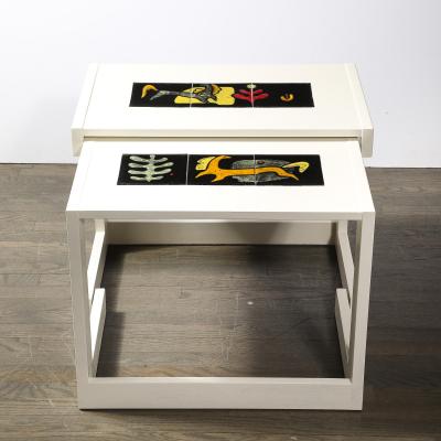 Pair of Documented Off White & Inset Tile Vladimir Kagan Nested Side Tables