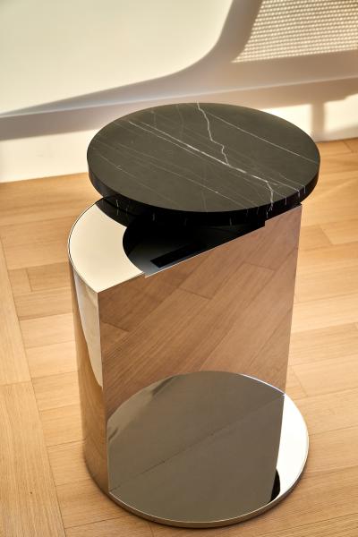 Art Deco Side Table with Drawer, Black Lacquer and Chrome, France circa 1930
