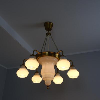'Arabian Nights' Chandelier in Brass & Glass, Attr. Kai Ruokonen, Ker-lux 1970s