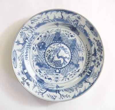 18TH CENTURY CHINESE EXPORT KANGXI IMARI SHELL DISH MOUNTED ON STAND
