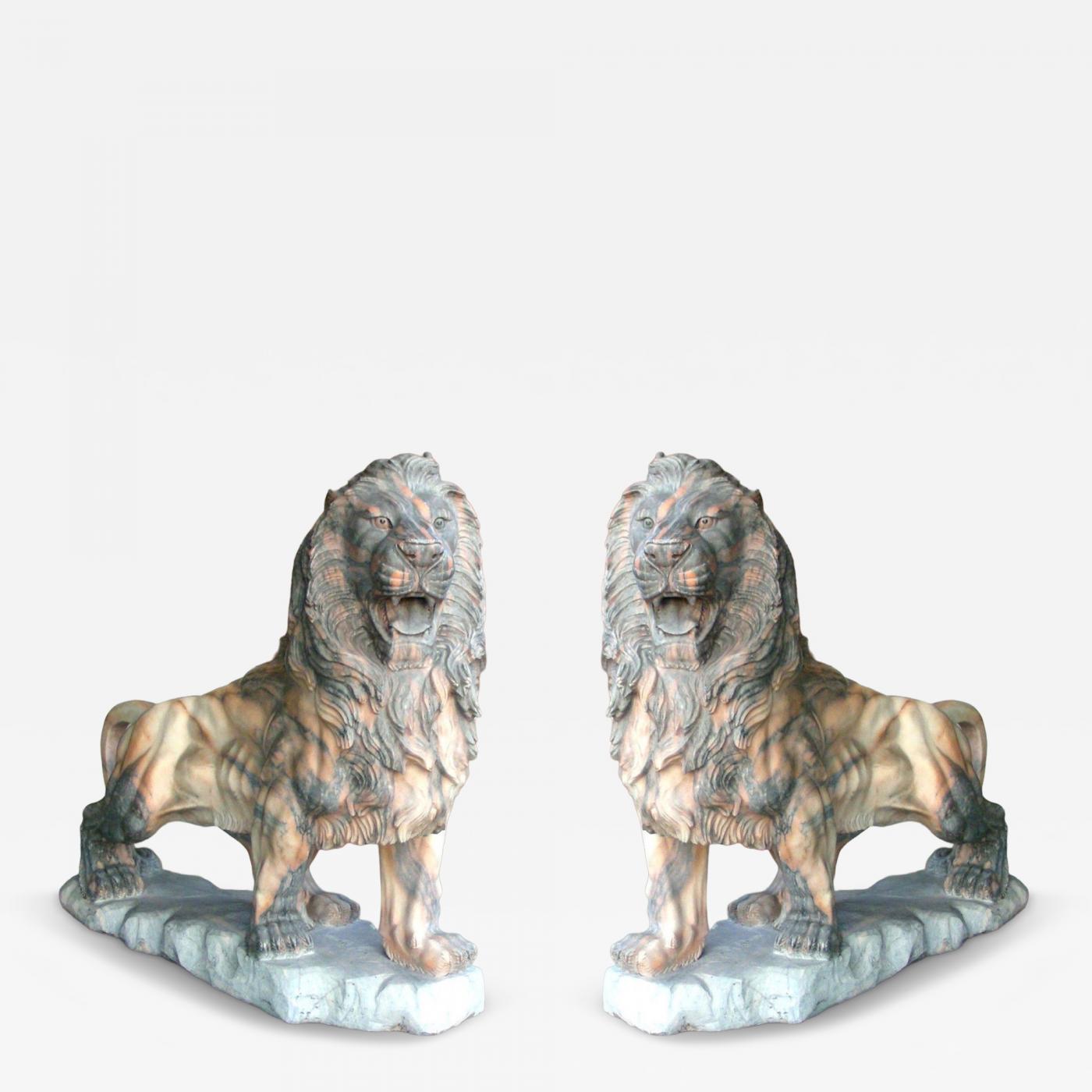Pair of Beautiful Marble, Hand Carved Lion Statues