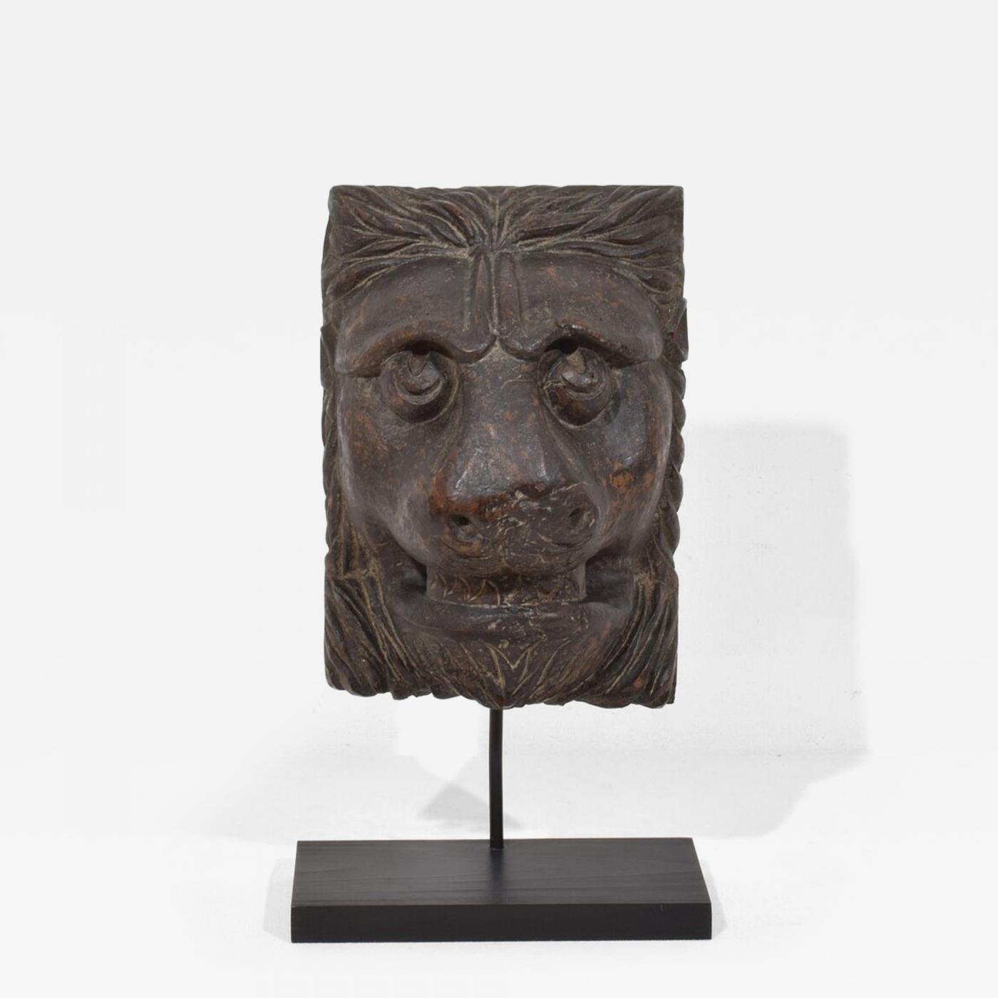 Gorgeous hand-carved wooden lion head with a great patina due to its extreme high age.