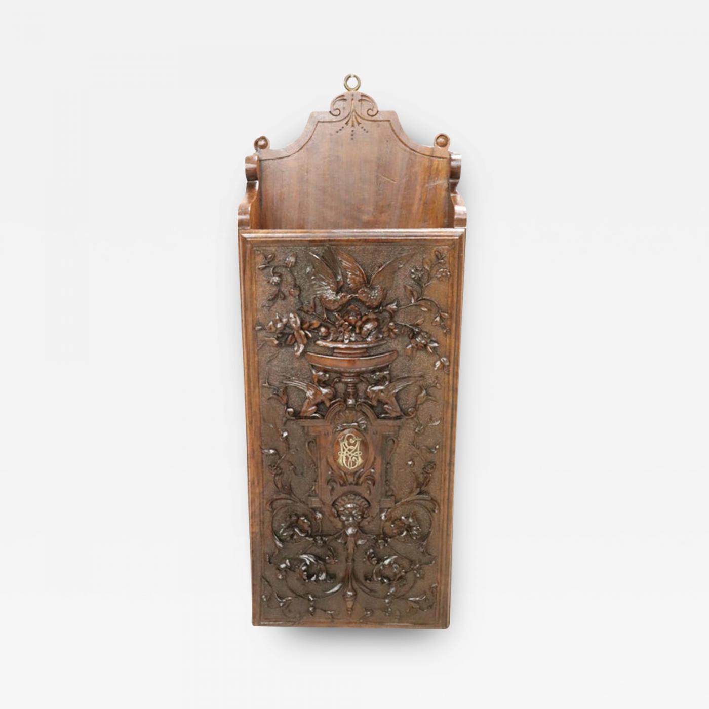 19th Century Renaissance Style Wall Magazine Rack in Hand Carved Walnut