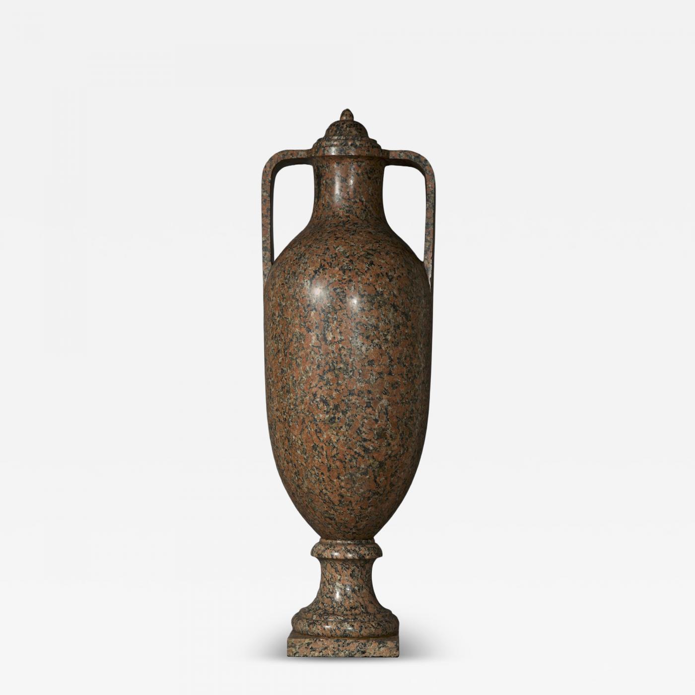 Given its large scale and exceptional coloration and grain structure, it is probable that the present amphora was carved from a pre-existing Roman column into its present form, as was customary in the neoclassical era. It employs not only the ancient material but also the traditional amphora form.