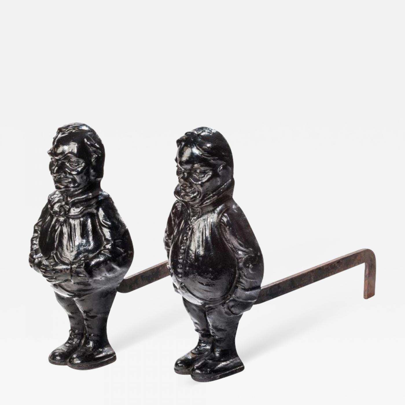 A Pair of large cast Iron andirons in the form of Tweedleddee and Tweedledum, Late 19th century