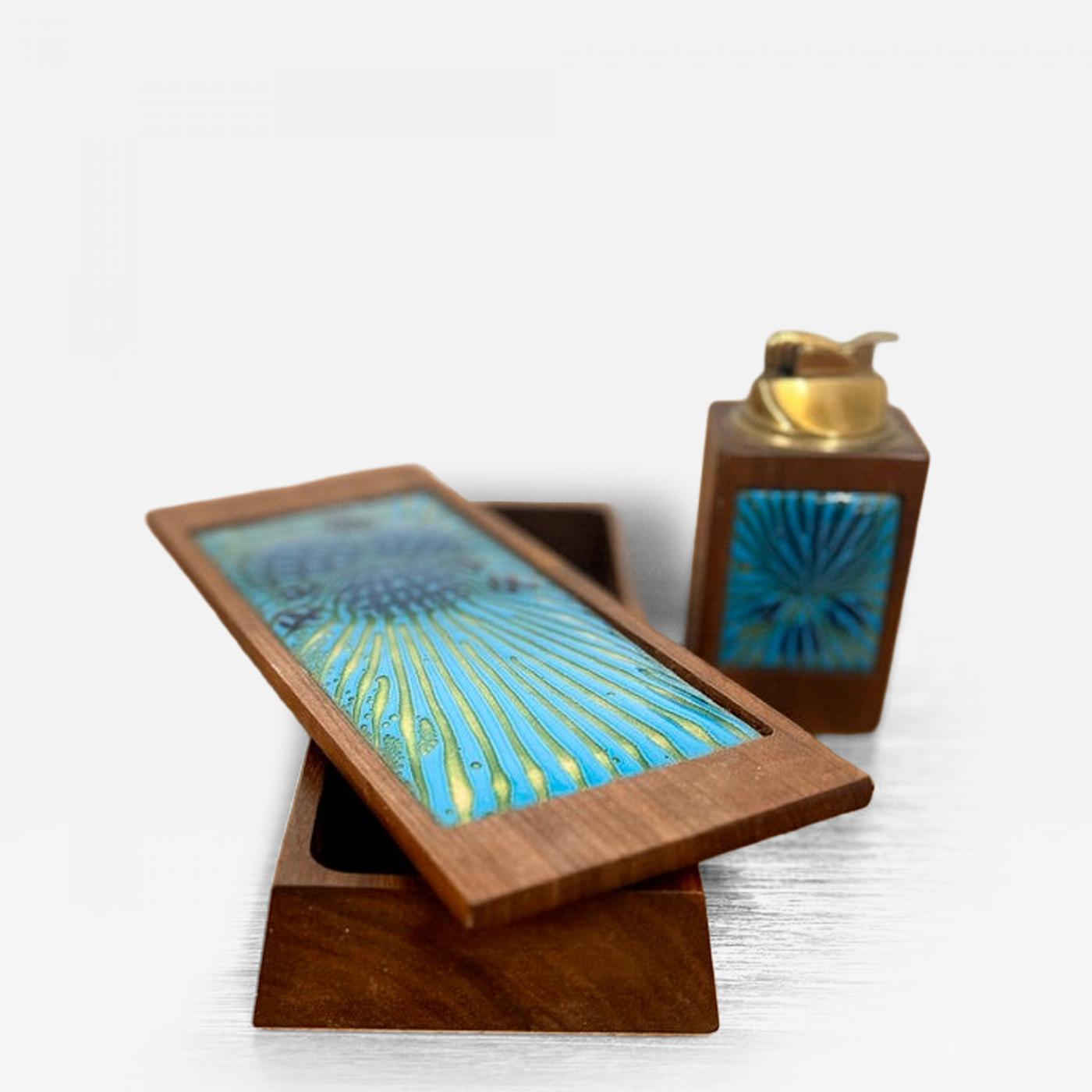Bring home a stunning example of Mid-Century Modern craftsmanship with this original Anna Marie Davidson enamel and wood lighter—a true gem of 20th-century American design. -