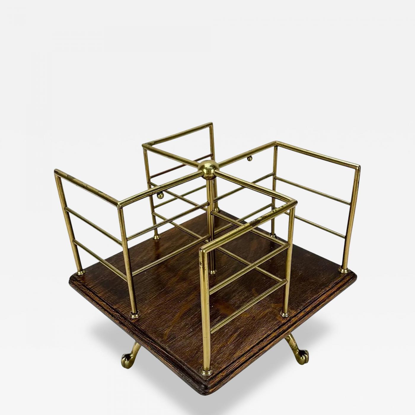 Antique Table Top Brass & Oak Rotating Book Stand.