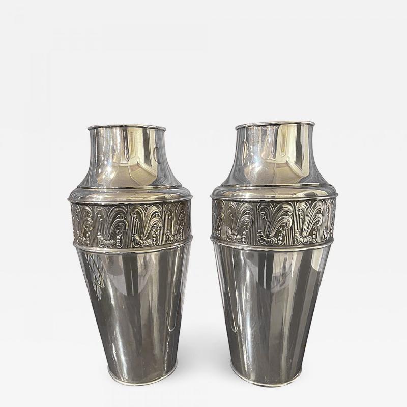 A pair of Art Nouveau Silver Urns in beautiful condition, embellished with repousse technique in which the pattern is pressed and hammered from the reverse side to create the ornamental design. Of German origin, these were purchased in Argentina.