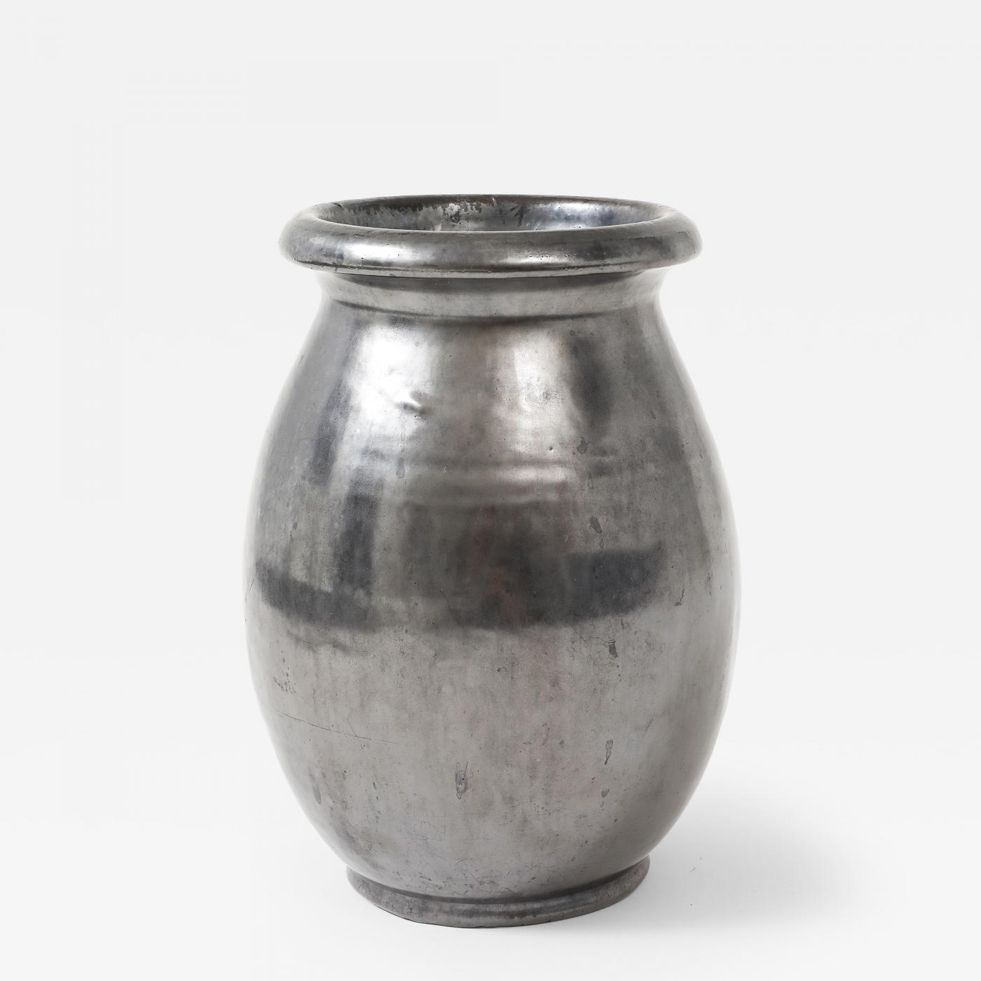 Large Japanese Manganese Black Enamel Glaze Vase, France, c. 1950, signed: ‘Aegitna’ Vallauris’